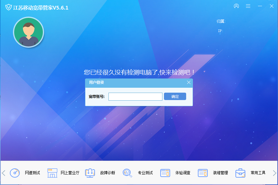 江蘇移動寬帶管家是一款針對江蘇移動網(wǎng)絡(luò)用戶所打造的一款寬帶上網(wǎng)助手,該工具的主要功能是幫助用戶檢測當(dāng)前存在故障的網(wǎng)絡(luò),如:寬帶故障診斷、修復(fù)、撥號設(shè)置、寬帶測速、移動網(wǎng)廳、路由器配置等功能,是有看非常不錯的上網(wǎng)好助手!