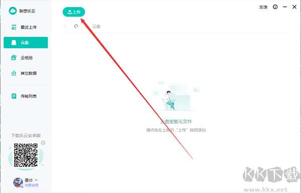 2、軟件有網(wǎng)盤、云相冊、最近上傳等功能,點擊上方的上傳按鈕,然后選擇需要上傳的文件