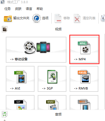1、打開格式工廠,在界面的左側為多種轉換類型,你可以點擊選擇想要轉換完成的格式,小編以MP4格式為例,點擊界面中的MP4選項,然后進入該界面。