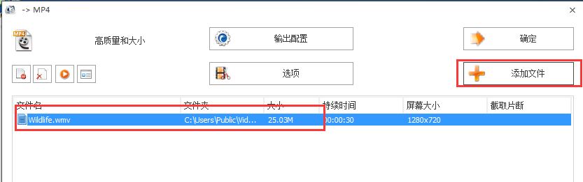 添加文件按鈕,然視頻文件導入進來。導入完成后在界面就會顯示出剛添加進來的視頻文件。進行下一步操作。