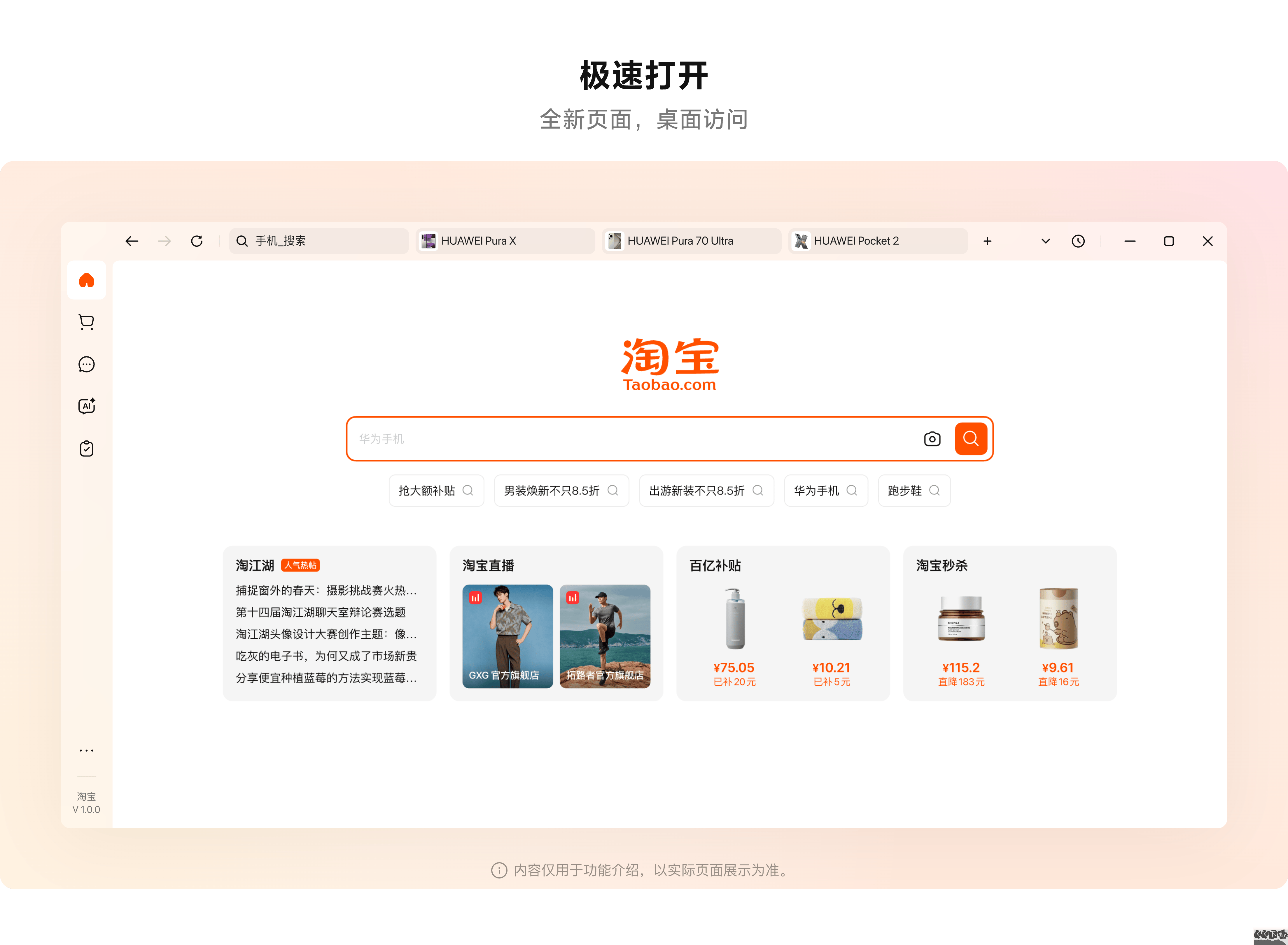 目前手機(jī)淘寶功能更全面,桌面版仍在逐步完善中。