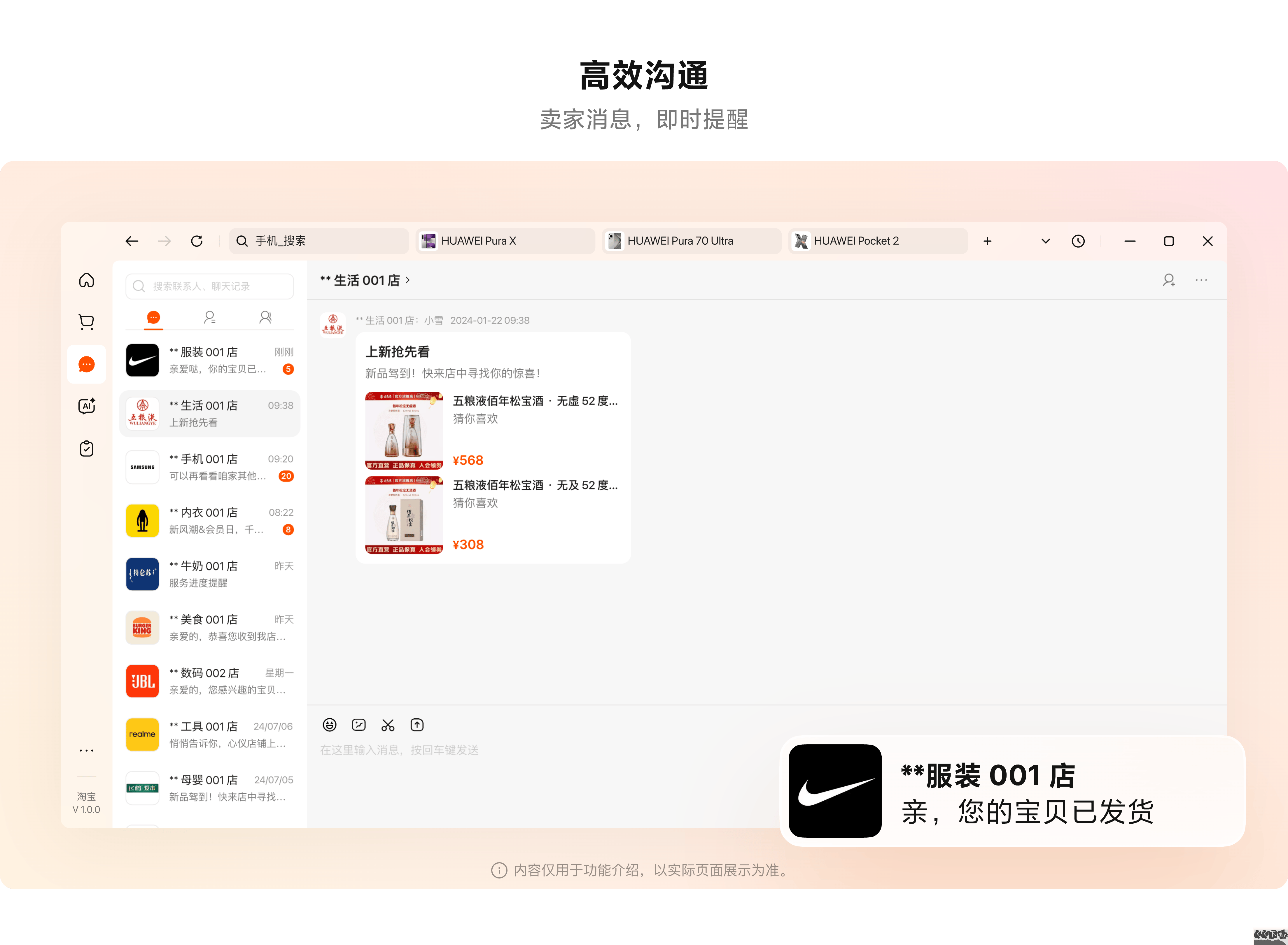 網(wǎng)頁(yè)版在瀏覽器多標(biāo)簽切換時(shí)容易漏看賣家消息,而桌面版的通知提醒更及時(shí)。