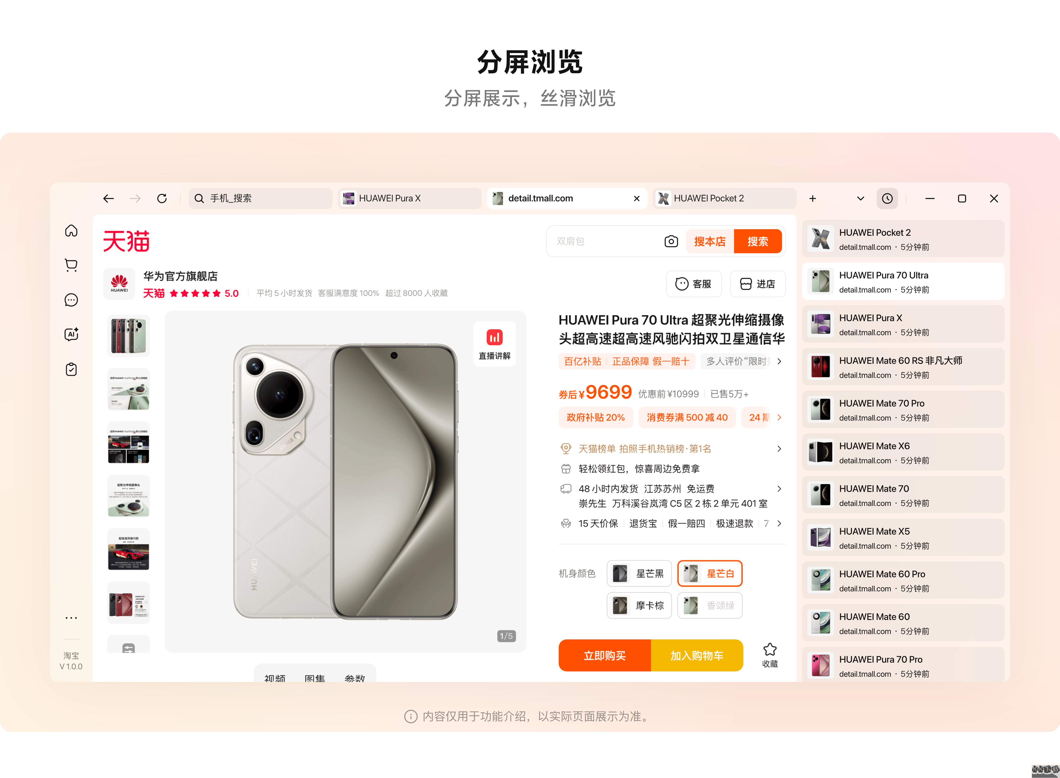 這是桌面版正在優(yōu)化的分屏功能,幫助用戶在瀏覽大量商品時(shí)更方便地對(duì)比和挑選。