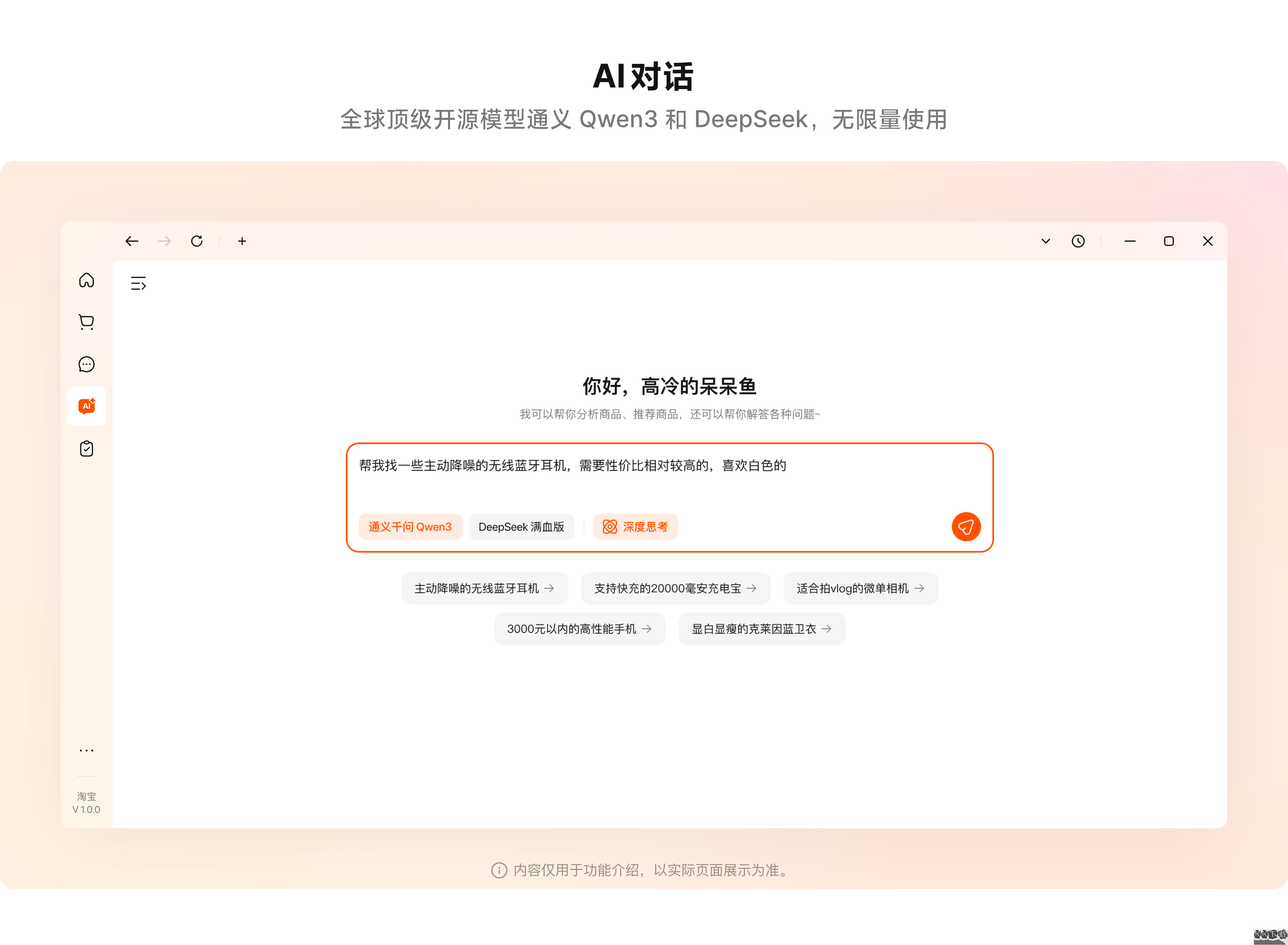 智能對(duì)話功能采用前沿開源大模型技術(shù),為用戶提供免費(fèi)、無限制的問答服務(wù),可以解答各類問題,包括購(gòu)物相關(guān)的疑問。