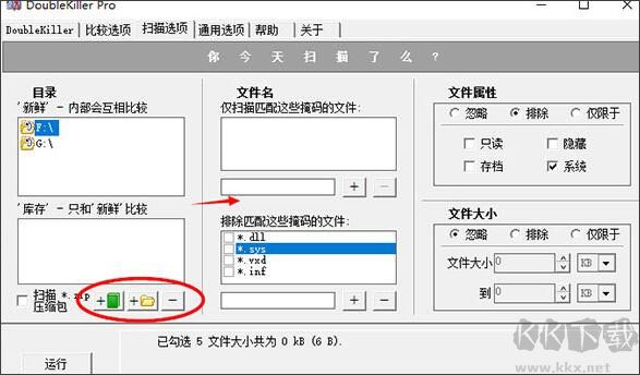 1、解壓后雙擊“DoubleKiller.exe”打開,先切換到“掃描選項”,點“添加”選擇要掃描的文件夾。右邊可以設(shè)置跳過某些文件類型,如果目錄里有壓縮包,記得勾選“掃描壓縮包”。