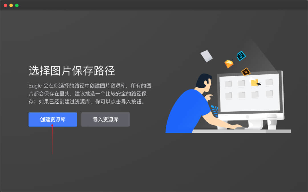 這個步驟我們會看到如下所示畫面,我們需要創(chuàng)建一個資源庫,未來在 Eagle 收藏的內(nèi)容都會保存在這的庫中。