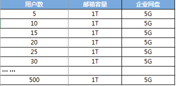 1、用戶量、電子郵箱容量,企業(yè)云盤容量不一樣