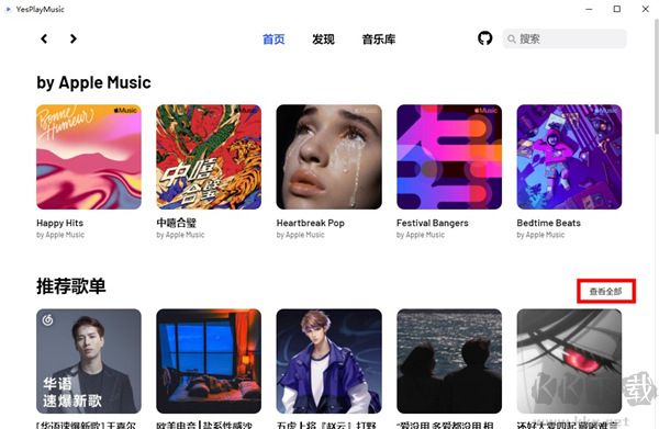 3、接著往下滑就可看到發(fā)現(xiàn)很多不同類型的音樂,隨便點擊一個進去(主要是看圖才進去的)
