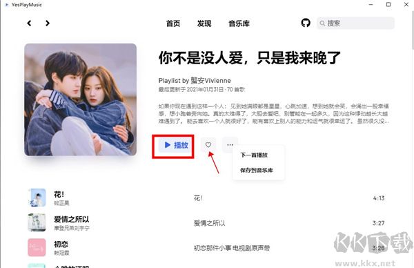 4、這里可以點擊播放,然后會根據(jù)下面的喜歡的可以點擊小愛心?收藏哦,或者保存到音樂庫中去哦,(題外話:女神降臨這個圖也太可了吧,這個劇很好看哦,感興趣的小伙伴們可以在韓劇tv中觀看哦)