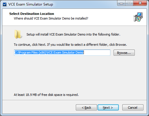 Setup wil install VCE Exam Simulator Demo into the fllowing folder.