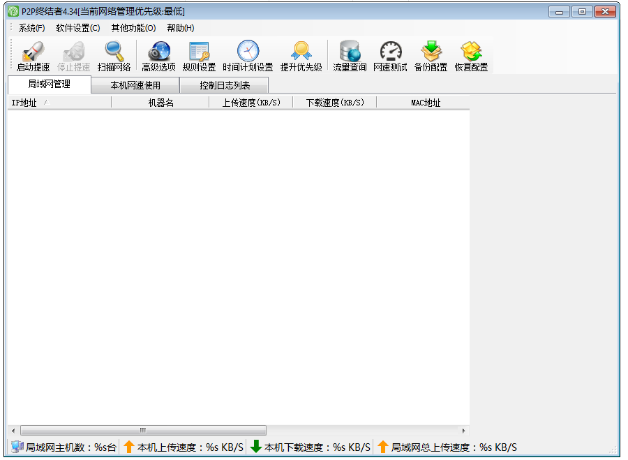 P2P終結(jié)者是一款強(qiáng)大的局域網(wǎng)網(wǎng)速控制軟件,它是局域網(wǎng)管理利器,通過P2P終結(jié)者我們可以監(jiān)控每臺(tái)電腦的下載、上傳流量,限制P2P等軟件占用網(wǎng)速,如果你的網(wǎng)速很慢,而且有多臺(tái)電腦使用,或許你可以試試P2P終結(jié)者最高權(quán)限版,本站提供最新版本下載。