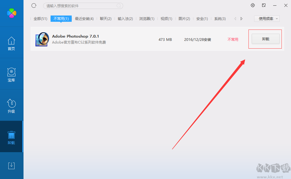 2、找到不常用軟件后,點擊卸載即可。