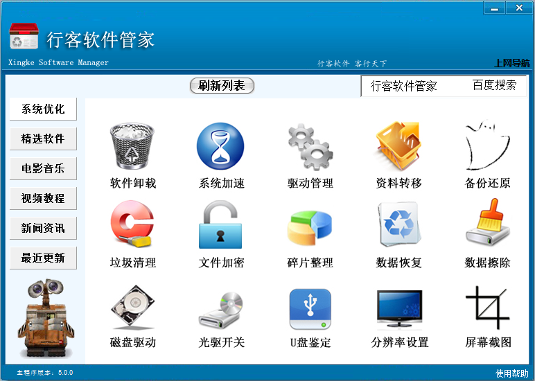 行客軟件管家是一款經(jīng)典的電腦軟件管理軟件,它的主要功能就是可以幫助大家對電腦上的軟件進(jìn)行分類,而且它還提供了很多了軟件卸載、系統(tǒng)加速、垃圾清理、數(shù)據(jù)恢復(fù)、文件加密等系統(tǒng)優(yōu)化工具甚至是電影和音樂都有,相信你一定會(huì)用的上!
