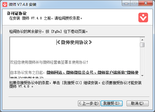 在安裝微師/7.4.8之前,請檢閱授權(quán)條款。
