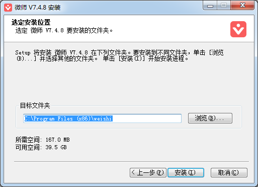 Setup將安裝微師,V7. 4.8在下列文件來。要安裝到不同文件來,單擊C瀏覽0)..1并選擇其他的文件夾。單擊安裝0)并始安裝進程。