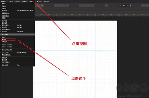 2、點擊菜單欄的“視圖”,再在彈出的下拉菜單中找到“參考線”,并點擊“參考線”。