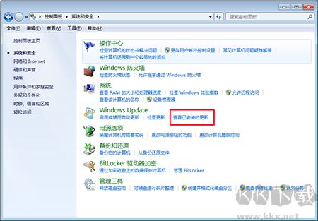 3、進(jìn)入以后找到“windows update”,點(diǎn)擊下面的“查看以安裝的更新”。