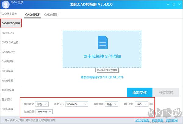 這個(gè)功能主要就是用來(lái)將CAD文件轉(zhuǎn)換成PDF或圖片格式,下面就是設(shè)置輸出色彩、頁(yè)面大小、背景顏色、輸出質(zhì)量等,同樣點(diǎn)擊開(kāi)始轉(zhuǎn)換按鈕即可。