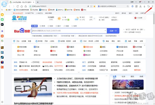1、打開(kāi)瀏覽器后,點(diǎn)右上角那個(gè)三道杠的菜單圖標(biāo)