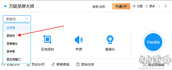下載并打開這款錄屏軟件,然后選擇【錄游戲】模式。
