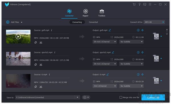 Vidmore是強(qiáng)大的視頻編輯處理軟件,能幫我們將視頻和音頻文件轉(zhuǎn)為任意想要的格式。從各大播放器下載的視頻只能在特定播放器觀看,交互體驗(yàn)差,像廠商套住用戶的套路。支持多種視頻格式轉(zhuǎn)換,畫面失真率小,支持藍(lán)光、1080P畫質(zhì)輸出,功能強(qiáng)大,簡單易用,感興趣的朋友快來下載體驗(yàn)!