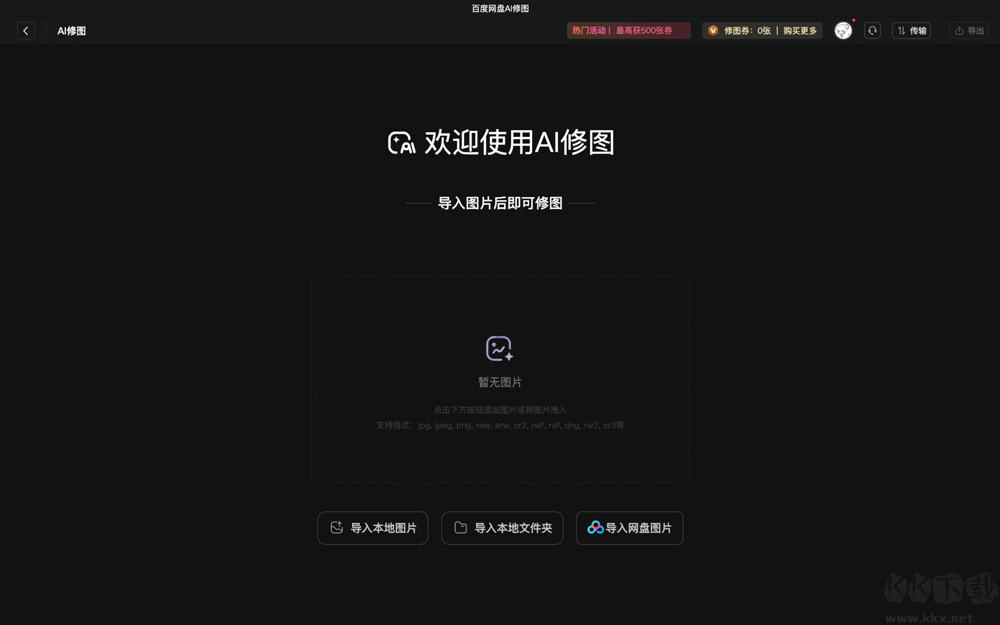 導入您需要修的圖片,支持導入本地電腦、百度網(wǎng)盤中的圖片。