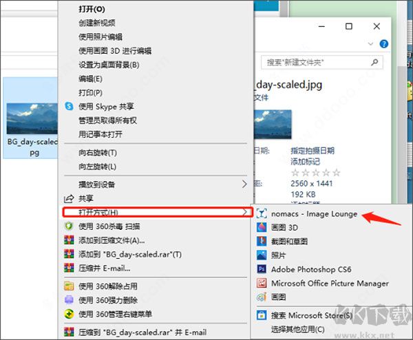 1、用戶可以直接右擊想要瀏覽的圖片,選擇“打開方式”選擇"nomacs-Image lounge”,或是直接將圖拖至軟件中查看圖片。