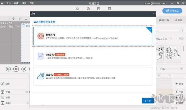 4、發(fā)布作品,將項目輸出為視頻、GIF和發(fā)布。