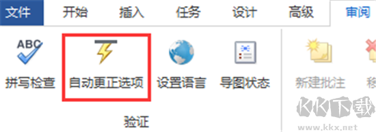 在審閱選項卡上,驗證組里,點擊自動更正選項。