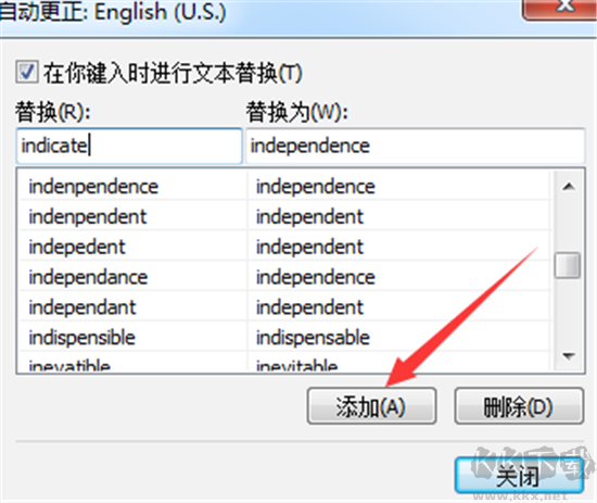 2、若要添加新詞目,輸入拼寫錯誤的單詞及其正確的版本,點擊添加。