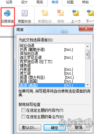 拼寫檢查字典語言取決于文檔語言,若要更改當前導(dǎo)圖的語言,在審閱選項卡上,驗證組里,點擊設(shè)置語言。