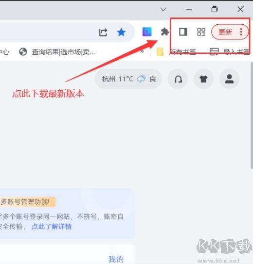 2、升級(jí)完成后,點(diǎn)擊瀏覽器工具欄【管理中心】icon即可開(kāi)啟使用~