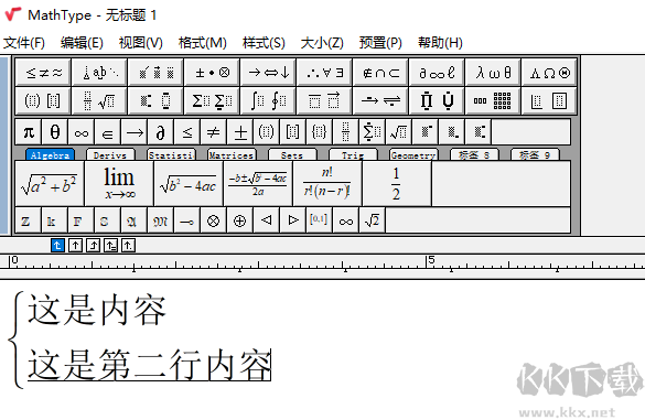 通過從該軟件的符號面板中選取模板,并在空白位置輸入內(nèi)容,快速構(gòu)建公式。輸入過程中會自動遵循數(shù)學排版的間距規(guī)則。