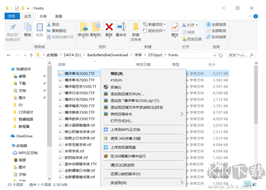 2、直接右鍵點(diǎn)擊字體文件彈出選擇安裝命令