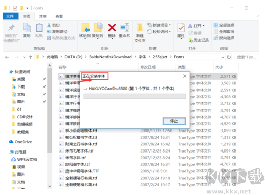 3、開始安裝字體,完成就安裝好了,這是比較簡(jiǎn)單適合字體文件少,如果文件多,就用后面介紹的方法