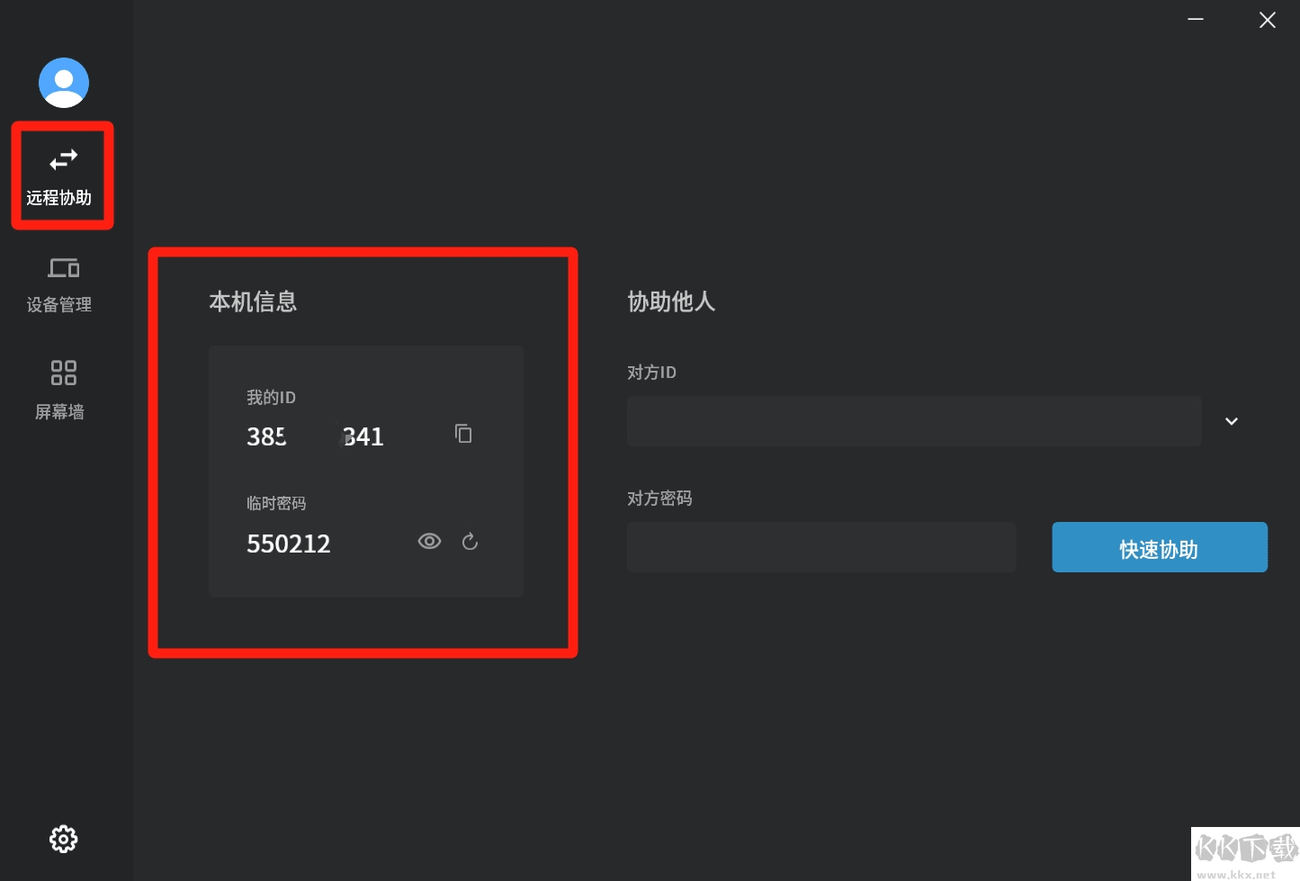被控端打開連連控,在“遠(yuǎn)程協(xié)助”的“本機(jī)信息”中查看本設(shè)備的 ID 和密碼。