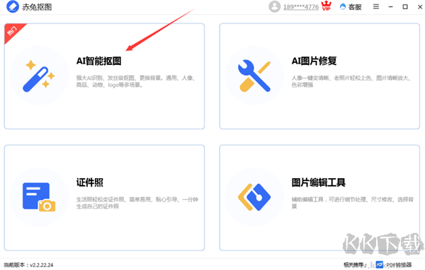 1、下載完成之后,首先打開(kāi)軟件。選擇“AI智能摳圖”這個(gè)功能。