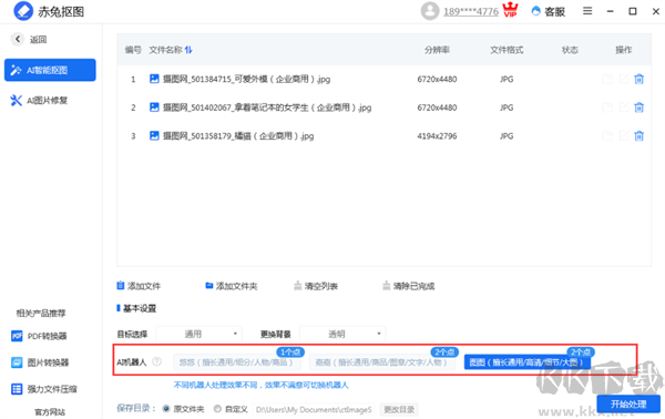 三種AI處理模式:根據(jù)不同的處理需求,用戶可以從三種不同的AI機(jī)器人中選擇,每種機(jī)器人的處理效果不同,可以滿足各種復(fù)雜場(chǎng)景的需求。