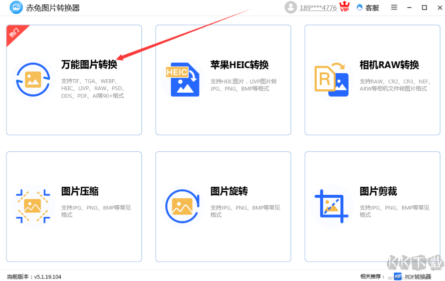 1、首先我們需要下載并安裝“赤兔圖片轉(zhuǎn)換器”,打開(kāi)之后選擇——萬(wàn)能圖片轉(zhuǎn)換——這個(gè)功能。