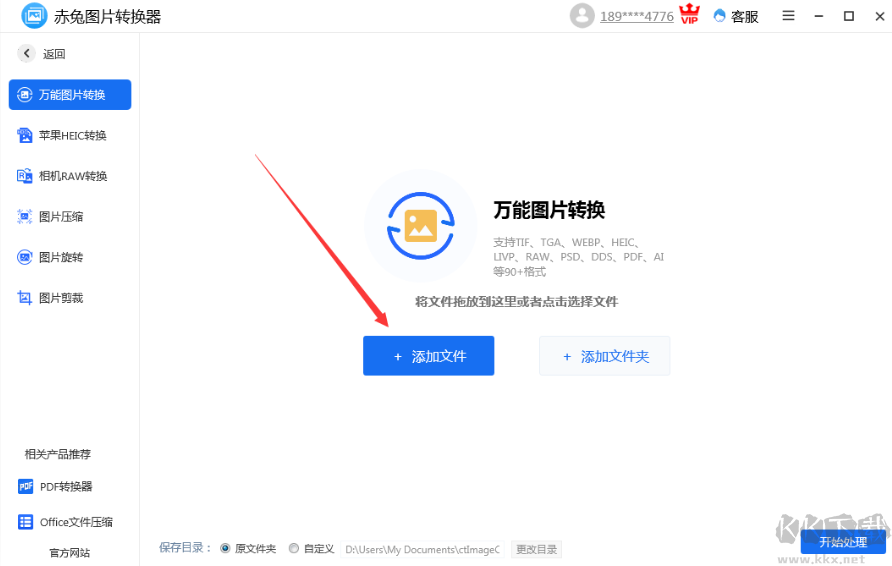 2、點(diǎn)擊進(jìn)來(lái)之后,我們?cè)冱c(diǎn)擊——添加文件——這個(gè)按鈕,來(lái)添加我們需要轉(zhuǎn)換的arw格式。