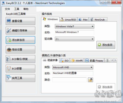 3、如果想加新的啟動選項,就點“添加新條目”,填好信息后別忘了按“添加條目”確認。