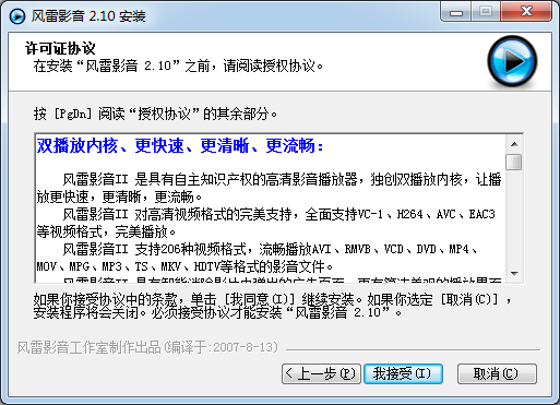 1.風雷影音II下載后,打開exe安裝程序,點擊下一步繼續(xù)安裝;