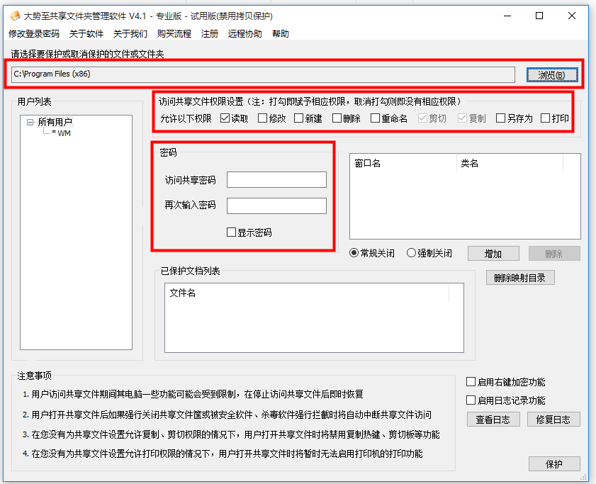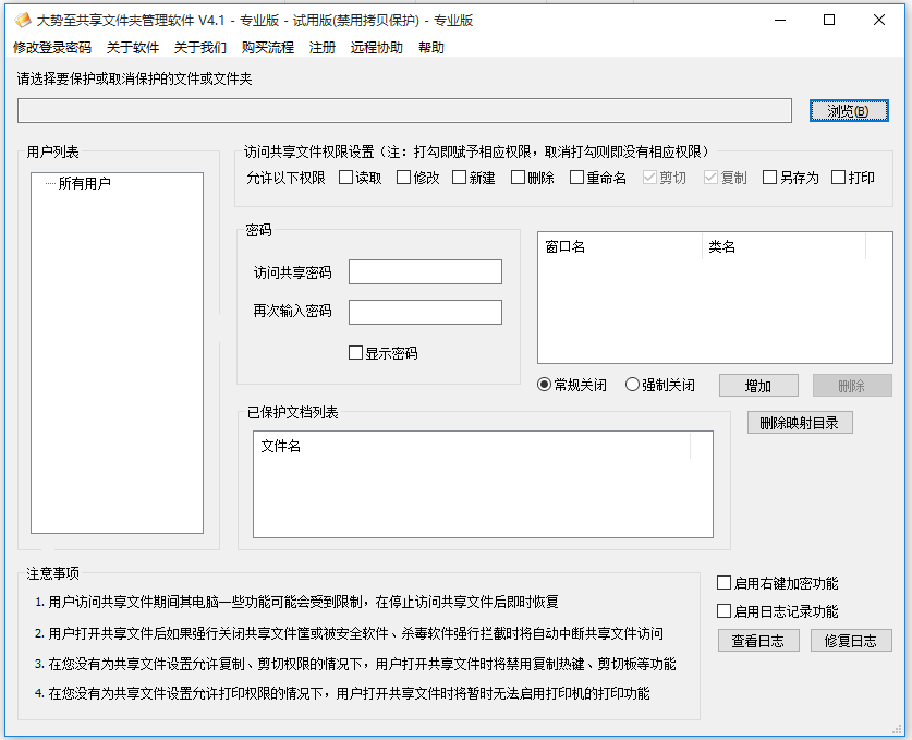 1、打開大勢至共享文件夾管理軟件,選擇你所要保護(hù)的文件;