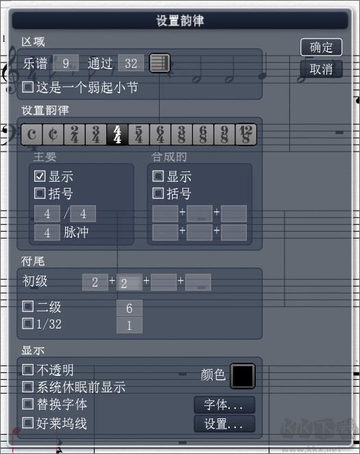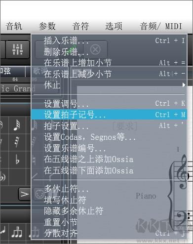 進入【參數】→【設置拍子記號】,在彈出的窗口中。
