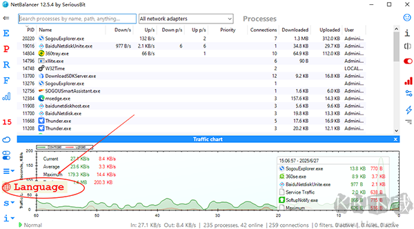 NetBalancer(網(wǎng)絡(luò)監(jiān)測(cè))是一款強(qiáng)大的本地網(wǎng)絡(luò)流量控制和監(jiān)控軟件,主要用于本地網(wǎng)絡(luò)流量的控制和監(jiān)視,即便下載管理器或 torrent 客戶端從互聯(lián)網(wǎng)下載大文件,用戶也能在電腦上順暢瀏覽并進(jìn)行任何網(wǎng)絡(luò)活動(dòng)。支持基于每個(gè)應(yīng)用設(shè)置上傳和 / 或下載速度限制,還能為選定進(jìn)程設(shè)置網(wǎng)絡(luò)流量?jī)?yōu)先級(jí)或阻止其所有網(wǎng)絡(luò)流量,從而有效控制每個(gè)進(jìn)程或軟件的上傳下載速度。需要的朋友快來下載試試吧!