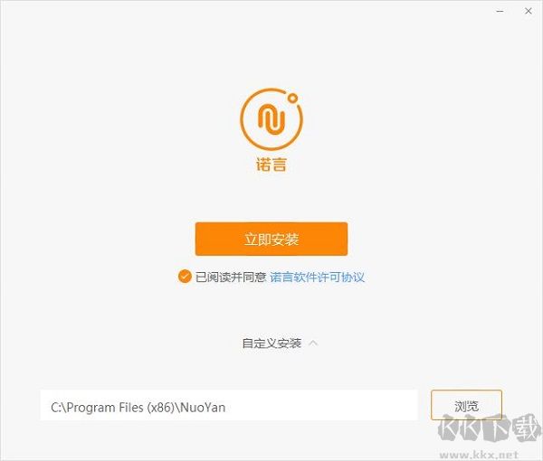 2、在如上界面直接雙擊【立即安裝】或是設(shè)置諾言軟件的安裝路徑;