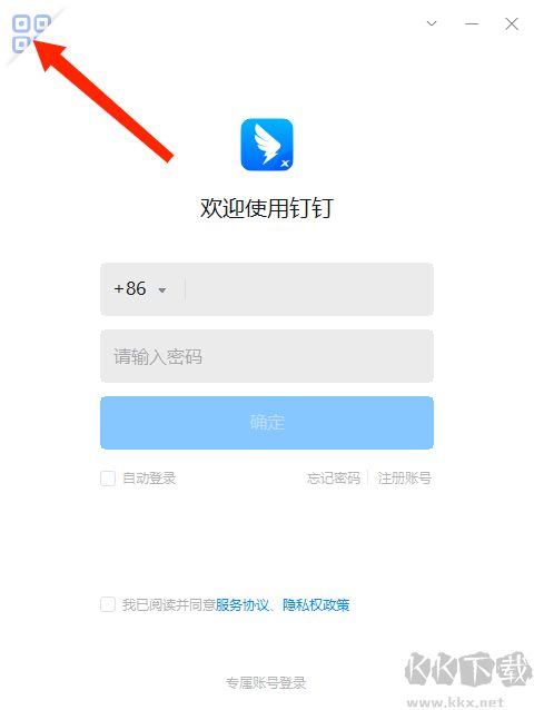 1、打開電腦版釘釘,點(diǎn)擊左上角【二維碼】圖標(biāo)。