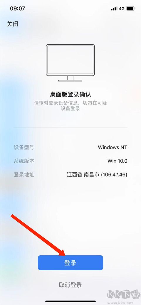 2、用手機(jī)釘釘掃描屏幕上的二維碼,選擇【登錄】確認(rèn)。