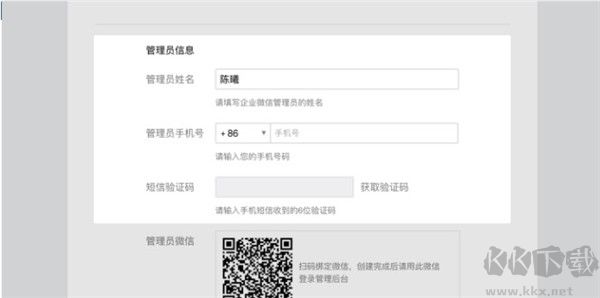 3、提交管理員詳細(xì)信息,包括姓名、手機(jī),并收取及填寫手機(jī)短信驗(yàn)證碼。