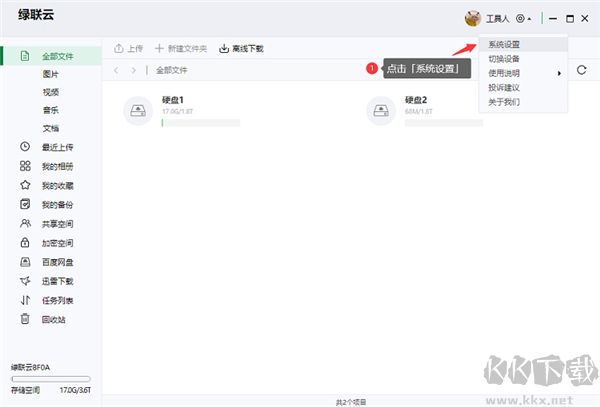 1、打開綠綠聯(lián)私有云電腦版,點(diǎn)擊「設(shè)置」按鈕;